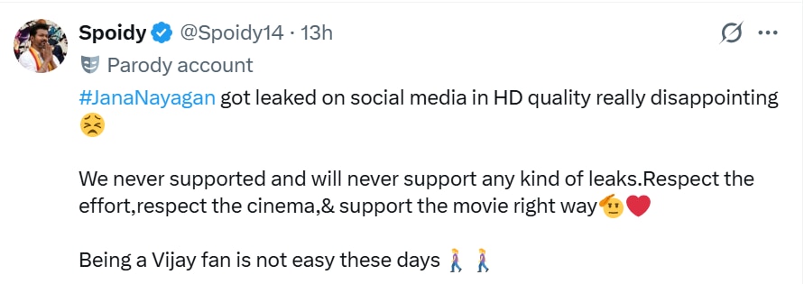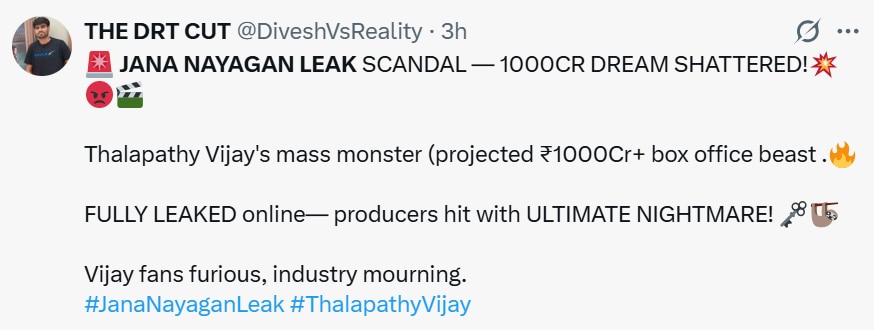 Many users have expressed shock, while others have strongly opposed sharing such content, stating it damages theatrical experience and violates creative rights. Some fans also linked the timing of the leak with growing anticipation around Vijay’s political journey as he prepares for the Tamil Nadu Assembly elections 2026 after launching his party, Tamilaga Vettri Kazhagam also known as TVK. Critics and supporters both have voiced concern as this is seen as one of most sensitive leaks involving a major star’s final cinematic appearance.