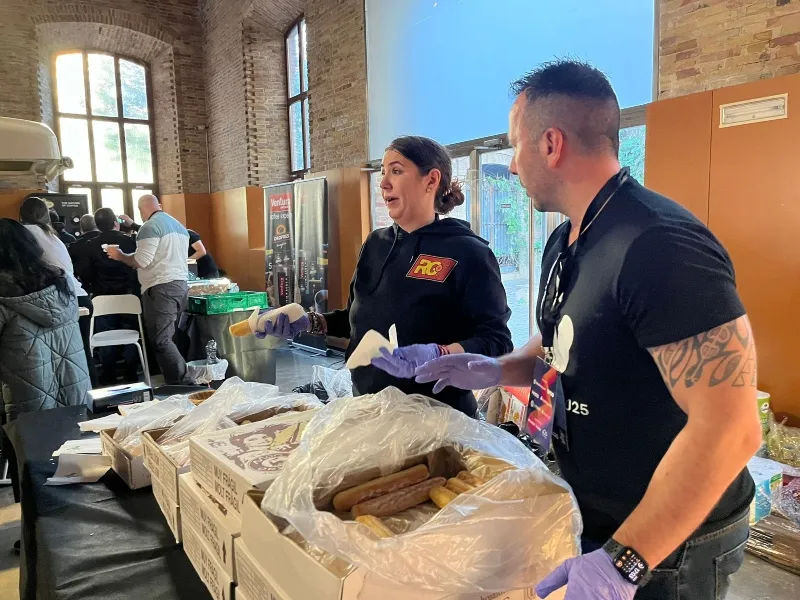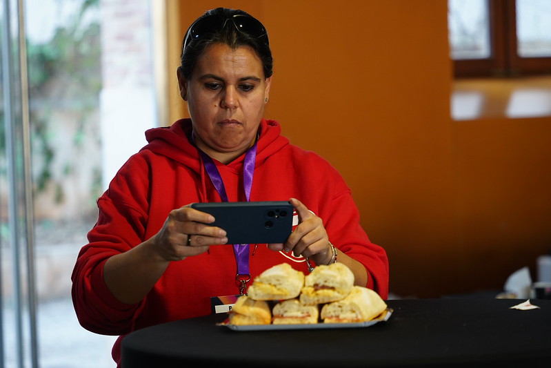 At every WordCamp in Spain, they offer some local culinary delights. In this case, our theme was traditional Valencian cuisine. We offered pastries, baked goods, and sandwiches from a local bakery, traditional rosquilletas, a delicious paella prepared by master paella chefs, traditional horchata, and fartons. To finish, pizza.